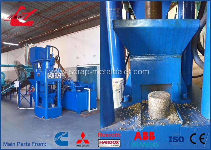 Press briket scrap logam ini dikonfigurasi dengan PLC untuk operasi otomatis. Sistem makan juga diadopsi, menjaga efisiensi tinggi. Dengan diameter 160mm, 180mm dan 200mm serta tinggi 300mm, briket dapat dirancang khusus dalam ukuran untuk memenuhi tuntutan pengguna.